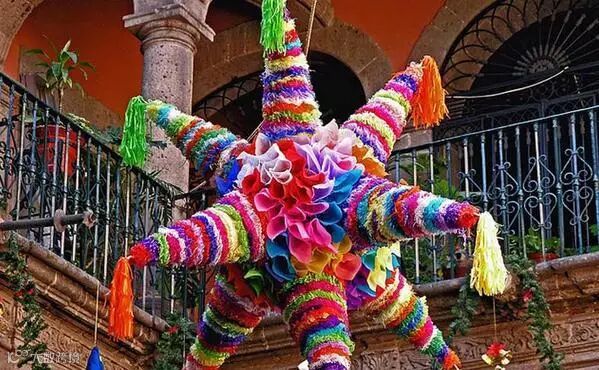 在墨西哥,一种名为“皮纳塔”(piñata)的彩饰陶罐在圣诞节很为流行,大人们将彩色纸片、玩具、糖果、硬币等礼物盛在罐内,悬于天花板上,让孩子们则轮流击破,直到把陶罐打破,里面的各种小玩意儿纷纷从天花板洒下。里面的东西散落一地后,孩子们会竞相收集尽可能多的“战利品”。(ps:在西班牙语国家中,皮纳塔在孩子们的生日时也很常见~)