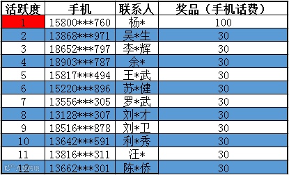 我们会公布下周活跃用户排名!兴许您的努力也会获得收获。
