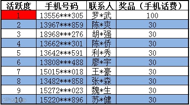 我们会公布下周活跃用户排名!兴许您的努力也会获得收获。
