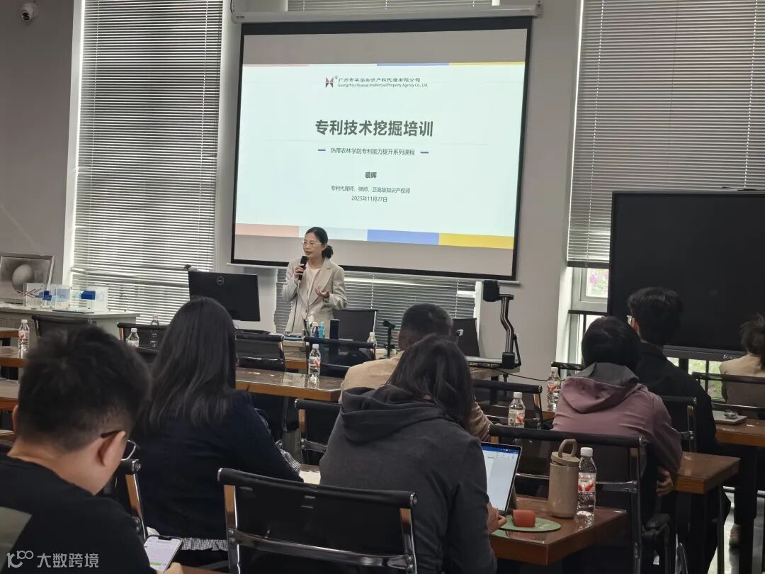 2025年11月27日,我司合伙人裘晖、项目管理部副总经理梁婉玲、总经理助理温建梅应广东农工商职业技术学院邀请,走进热带农林学院,为教职工带来一场题为 “专利技术挖掘”与“专利精准检索” 的专题培训。本次讲座是学院“专利能力提升系列课程”的重要一环,旨在系统提升教师在知识产权创造、运用与保护方面的能力,为学院科技创新与成果转化注入专业动能。