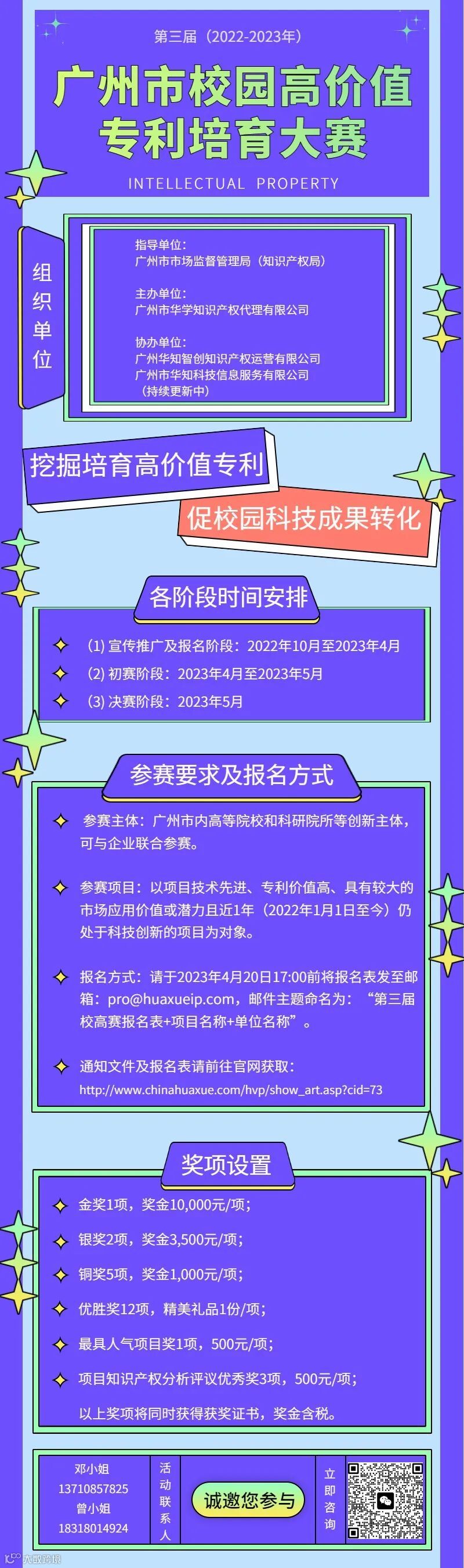 通过校高赛官网、华学知识产权公众号及官网或使用微信扫描海报下方二维码,加入活动交流群,密切关注赛事动态。
