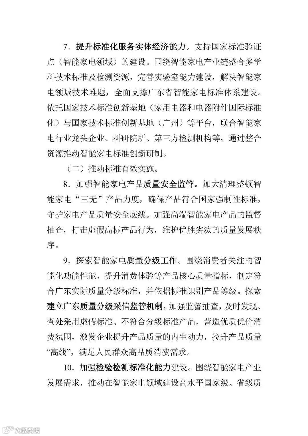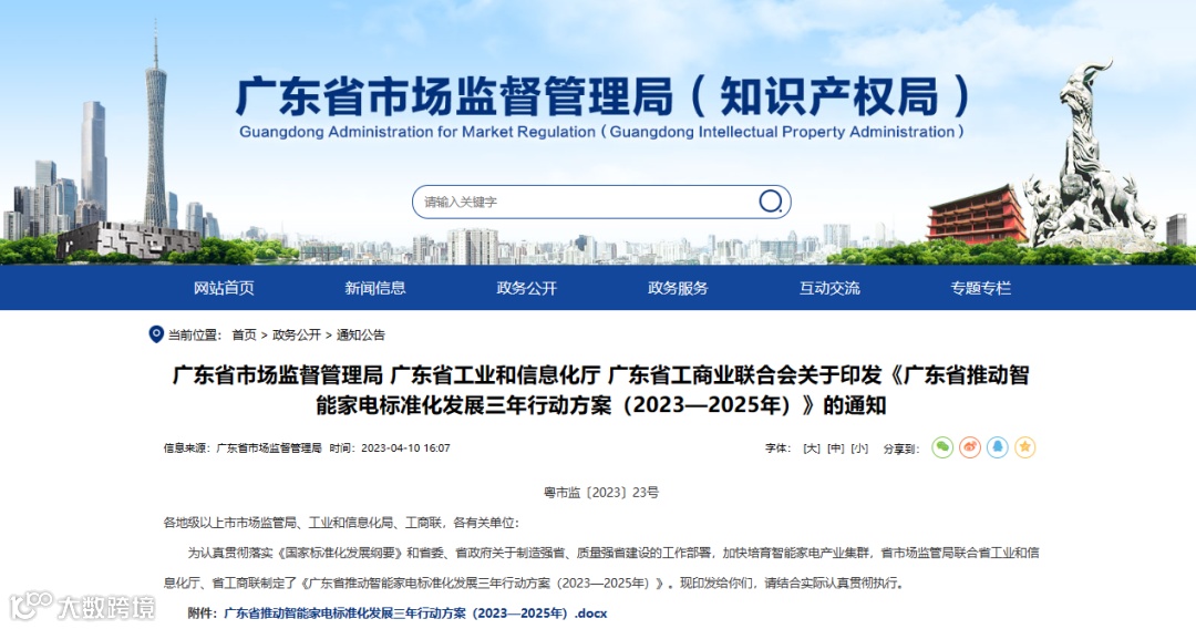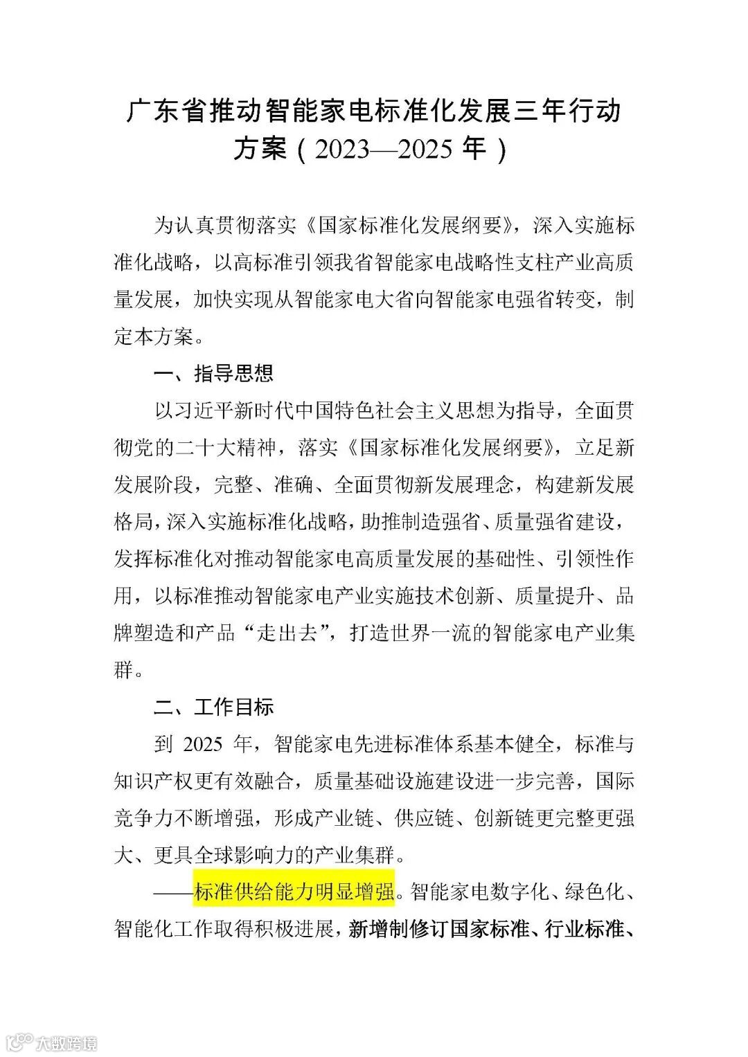 为认真贯彻落实《国家标准化发展纲要》和省委、省政府关于制造强省、质量强省建设的工作部署,加快培育智能家电产业集群,省市场监管局联合省工业和信息化厅、省工商联制定了《广东省推动智能家电标准化发展三年行动方案(2023—2025年)》。现印发给你们,请结合实际认真贯彻执行。