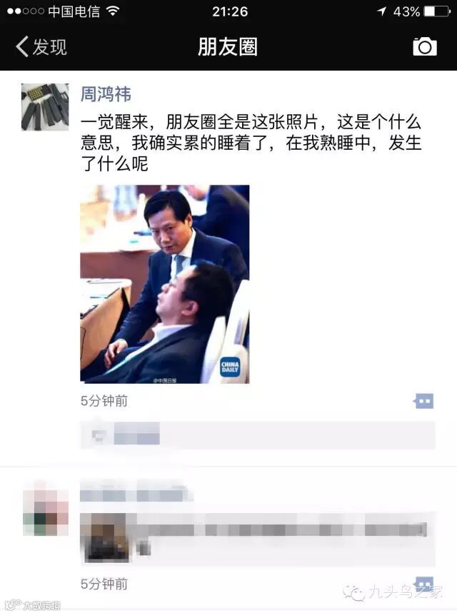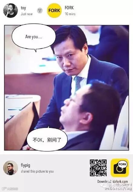 昨晚,微博、朋友圈被一张由人民日报抓拍的雷军、周鸿祎同框照霸屏。图中,周鸿祎躺在椅背上酣睡,而雷军凝视的一瞬眼神意味深长。不过,这张照片已经被网友玩残(疯)了,你也要“帮雷军周鸿祎配对话”吗?