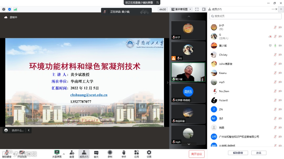 (华南理工大学黄少斌老师做“环境功能材料和绿色絮凝剂技术”项目路演)