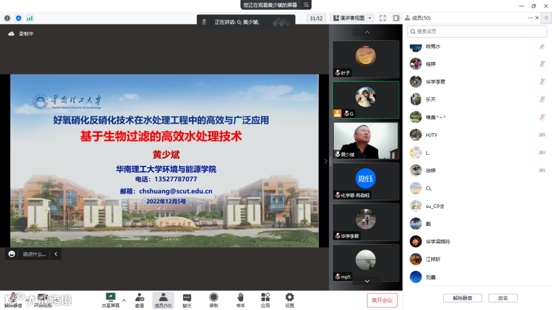 (华南理工大学黄少斌老师做“基于生物过滤的高效水处理技术”项目路演)