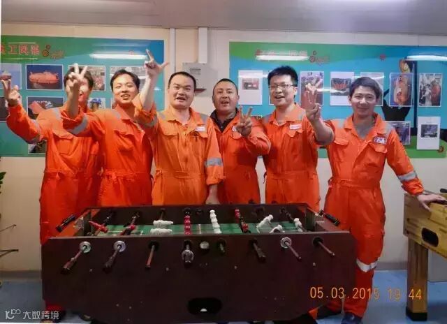 海上工作范围狭小,较为封闭,人容易产生烦躁情绪。人一旦情绪不好,工作时就容易发生安全事故。为此,我们会利用工余时间,开展桌上足球比赛、包饺子、KTV等集体活动。大家玩在一起,开心在一起,增进了同事之间的感情,增加了团队的凝聚力。