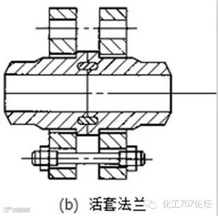 这种法兰与管子不直接焊在一起,而是以管口翻边或焊环为密封接触面,松套法兰起紧固作用,多用于铜、铝和铅等有色金属及不锈耐酸钢管道上。其最大的优点是由于法兰可以自由活动,法兰穿螺栓时非常方便。焊环松套钢制管法兰适用压力PN0.6~2.50MPa,其规格范围为DN10~600mm;压力PN4.0MPa,规格范围DN10~300mm,平焊环松套钢制管法兰只适用较低压力,PN0.6~1.6MPa,其规格范围DN10~600mm。管口翻边活套法仅适用于PN06MPa及以下。焊环松套法兰如图。