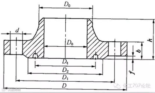 光滑面对焊法兰,其公称压力为PN2.5MPa以下,规格范围为DN10~2000mm,公称压力PN2.5MPa,规格范围DN10~1000mm,公称压力PN4.0MPa,规格范围DN10~600mm,如图。