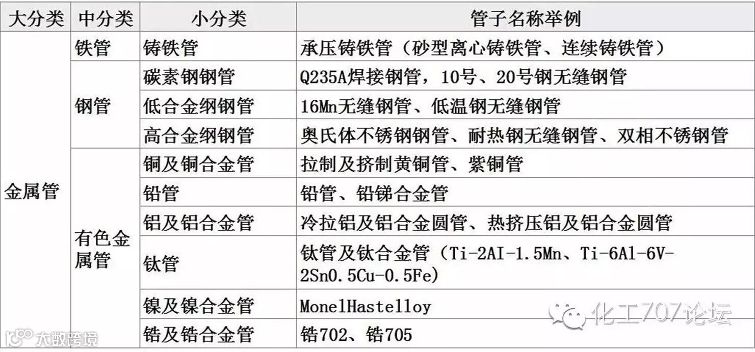 有关金属管材分类,见下表