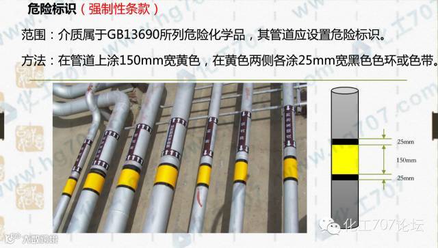 a)适用范围:管道内的物质,凡属于GB13690所列的危险化学品,其管道应设置危险标识。
