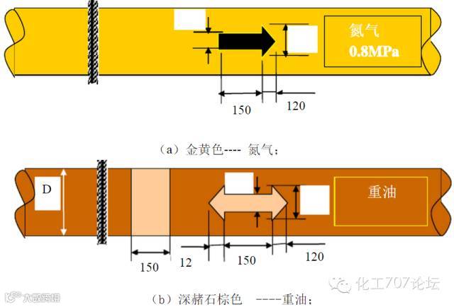 Φ273mm以下的管道的基本识别色和流向、压力、温度等标识方法参考图(d、e图)