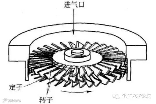 ②涡轮分子泵:泵内装有带槽的圆盘或带叶片的转子,它在定子圆盘(或定片)间旋转。转子圆周的线速度很高。这种泵通常在分子流状态下工作。