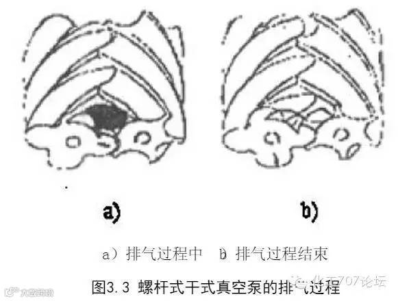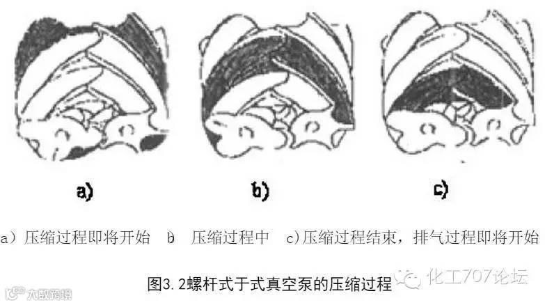 所示。这个过程一直持续到齿末端的型线完全啮合,如图b所示。此时,齿间容积内的气体通过排气孔口被完全排出,封闭的齿间容积的体积变为零。