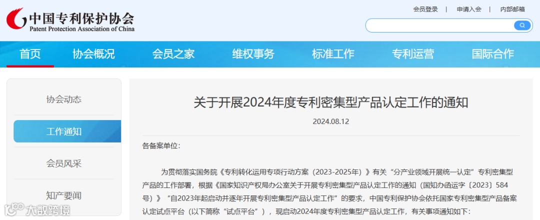 为落实国务院专利转化运用专项行动方案,遵循国家知识产权局要求,中国专利保护协会近日发布了《关于开展2024年度专利密集型产品认定工作的通知》并依托国家专利密集型产品备案认定试点平台启动2024年度专利密集型产品认定工作。此次认定,面向全社会广泛征集,鼓励各企业积极参与,通过初筛、分产业认定、公示等环节,认定并公布符合条件的产品,旨在全面挖掘并表彰那些经济效益高且专利保护强度高、专利价值贡献高、产品竞争力对专利依赖度高的产品。