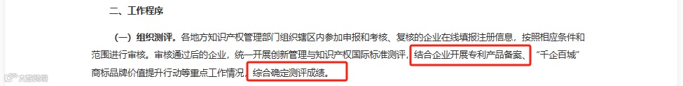 (2)国家知识产权优势示范企业认定:将专利产品备案情况作为考核复核的测评成绩条件。
