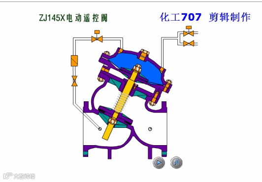该阀在管路中,人为远距和就地遥控开启或关闭,控制管内介质流通或切断,当需要打开阀门时,事先打开启动按钮,电磁阀通电打开,主阀控制室内压力水,经电磁阀流向出口,控制室内压力降低,主阀瓣打开,开始大量通水,当点击停止按钮,电磁阀失电而关闭,主阀室内压力升高,主阀瓣关闭,水流停止。