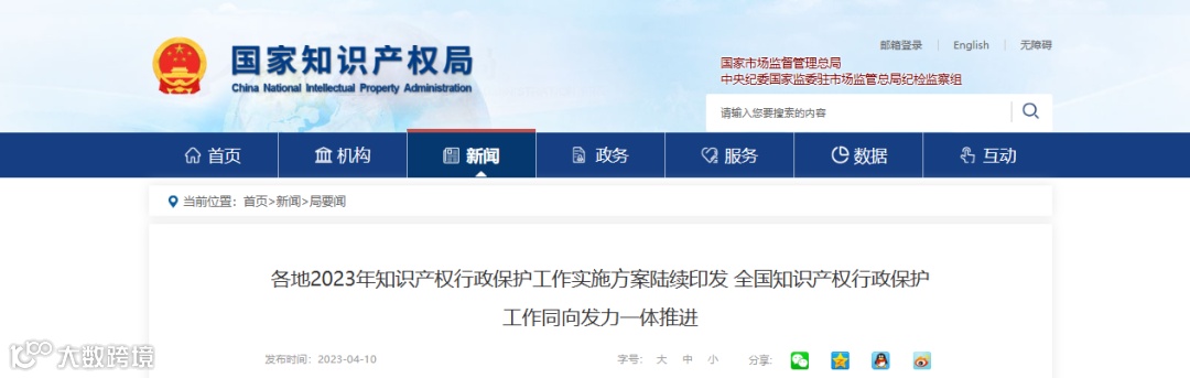 按照工作部署安排,日前,全国31个省(区、市)和新疆生产建设兵团知识产权局陆续印发了2023年知识产权行政保护工作实施方案,在辖区内统筹安排、周密部署年度知识产权行政保护工作任务,全国知识产权行政保护工作上下联动、同向发力、一体推进。