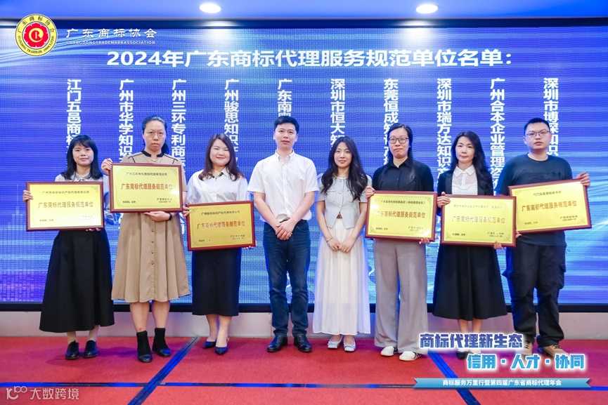 商标事业部副总经理余焕娜参加广东省商标协会组织举行的商标服务万里行暨第四届广东省商标代理年会,活动现场举行了广东省商标代理行业自律倡议仪式,发布了2024年度广东商标代理机构确权榜TOP100,并且为第二批广东商标代理领军人物、第二批广东商标代理高级人才、2024年度广东商标代理机构确权榜上榜的AAA+++机构以及2024年商标代理服务规范单位授牌,随后活动邀请了不同的嘉宾分别就“2025年广东商标代理千百十计划工作解读”、“协同监管,深化商标代理信用体系建设——解读商标代理信用评价体系的落地与实践”、“商标法与反不正当竞争法的交叉适用”、“代理人价值赋能企业商标战略”、“地理标志注册申请代理需要注意的事项”、“DeepSeek对商标代理工作模式的革新与分工边界探讨”等进行了主题分享,与会嘉宾就“‘法律+商业+技术’复合型代理人才的知识结构需求”这一主题展开深入交流。我司成功延续认定为广东商标代理服务规范单位,并入选2024年度广东商标代理机构确权榜TOP100榜单。