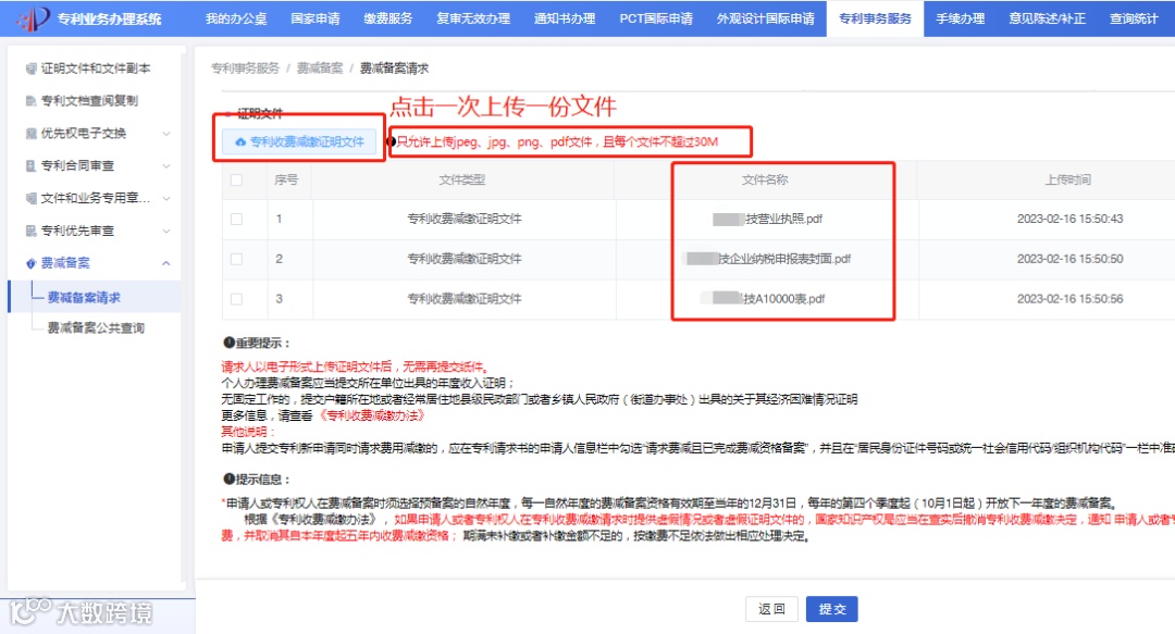 注:2个或者2个以上的个人或者单位为共同专利申请人或者共有专利权人的,应当分别符合费用减缴条件。(任一方不符合条件,不予享受减缴)
