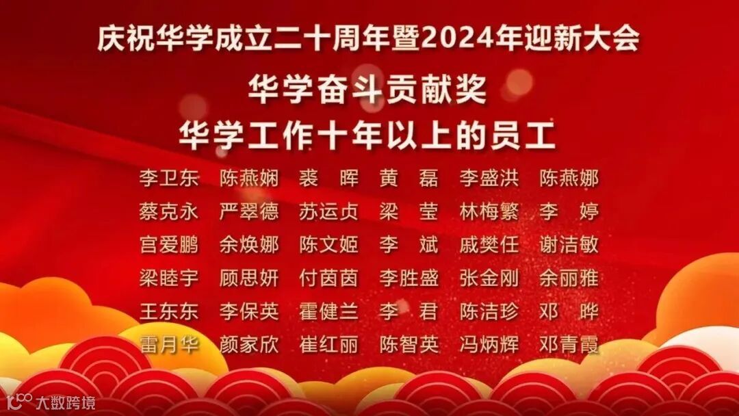 华学奋斗贡献奖——华学工作十年以上员工获奖名单