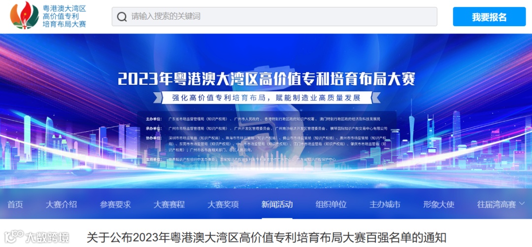 来源:粤港澳大湾区高价值专利培育布局大赛官网