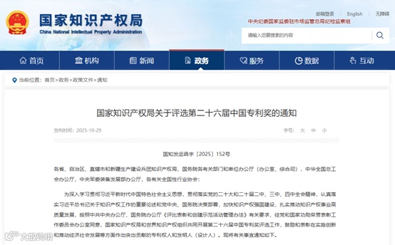 🏆 各位专利权人,专利界的“奥斯卡”评选正式启动了——国家知识产权局已发布第二十六届中国专利奖评选通知!作为国家授予专利权人的最高荣誉(由国家知识产权局与世界知识产权组织联合主办),这不仅是技术实力的“金字招牌”,更藏着真金白银的补贴和发展红利。中国专利奖从来不是“虚名”,而是企业发展的“硬通货”。
