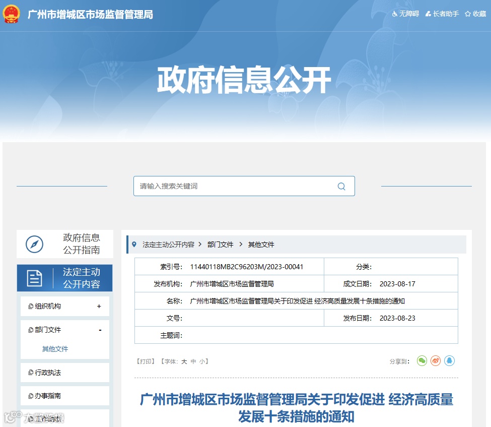 # 广州市增城区市场监督管理局促进经济高质量发展十条措施