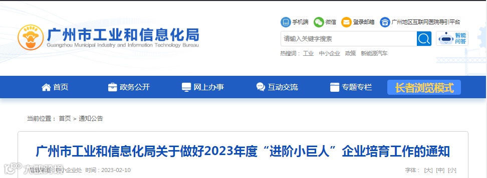 为贯彻落实工信部《优质中小企业梯度培育管理暂行办法》及《广州市“专精特新”中小企业培育三年行动方案(2022-2024)》,以及市领导“专精特新中小企业培育工作要早谋划”的指示要求,现开展2023年度“进阶小巨人”培育工作,通知如下: