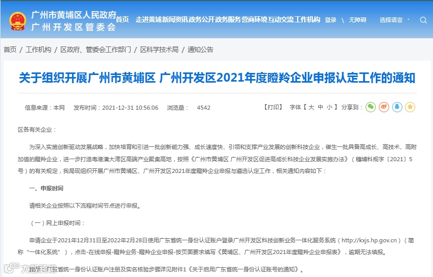 为深入实施创新驱动发展战略,加快培育和引进一批创新能力强、成长速度快、引领和支撑产业发展的创新科技企业,催生一批具备高成长、高技术、高附加值的瞪羚企业,进一步打造粤港澳大湾区高端产业聚集高地,按照《广州市黄埔区 广州开发区促进高成长科技企业发展实施办法》(穗埔科规字〔2021〕5号)的有关规定,我局现组织开展广州市黄埔区、广州开发区2021年度瞪羚企业申报与遴选认定工作,相关通知内容如下: