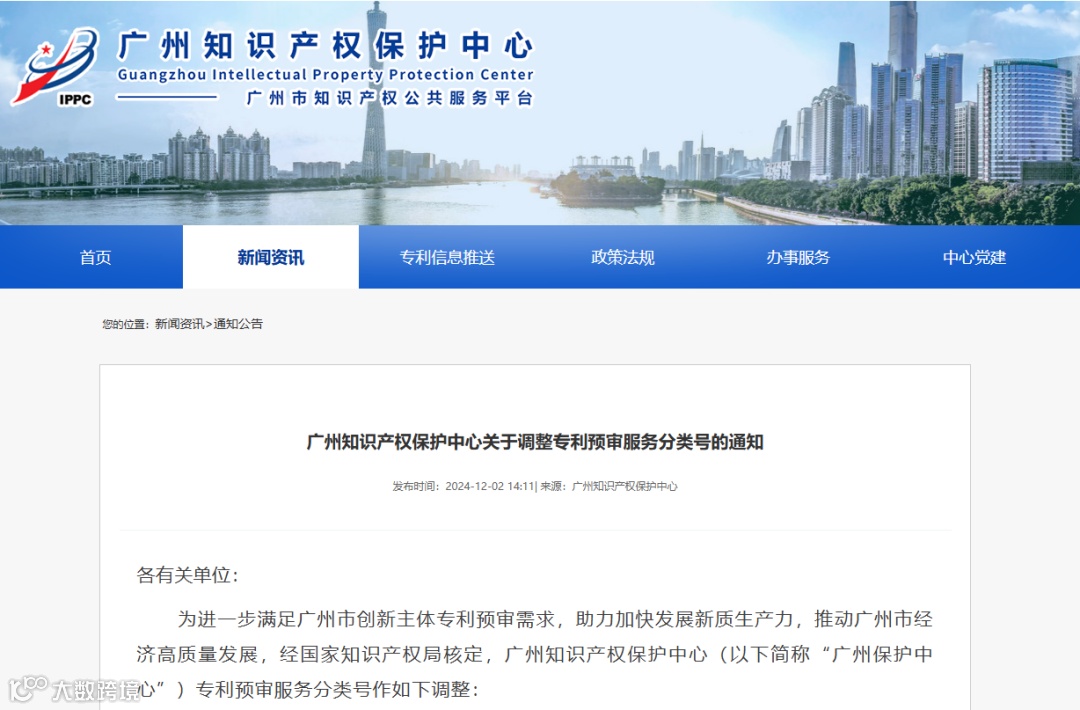 近期,经国家知识产权局核定,广州知识产权保护中心的专利预审服务分类号进行了最新调整。