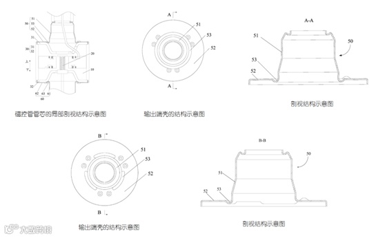 技术要点:通过磁控管管芯,在上管壳与上板的连接处设置有支撑在凹槽的槽壁上的上加强部,此上加强部可以抵御外部压力所造成的变形,避免磁控管的形状尺寸偏离设计值而导致磁通量减少,从而影响磁控管使用效果的情况发生,保证了磁控管使用的可靠性