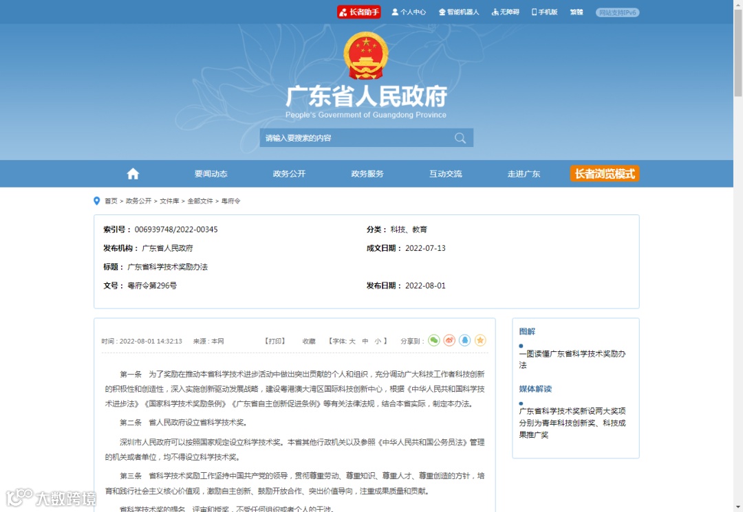 第三十六条 本办法自2022年9月1日起施行。广东省人民政府2000年9月21日公布的《广东省科学技术奖励办法》(广东省人民政府令第61号)同时废止。