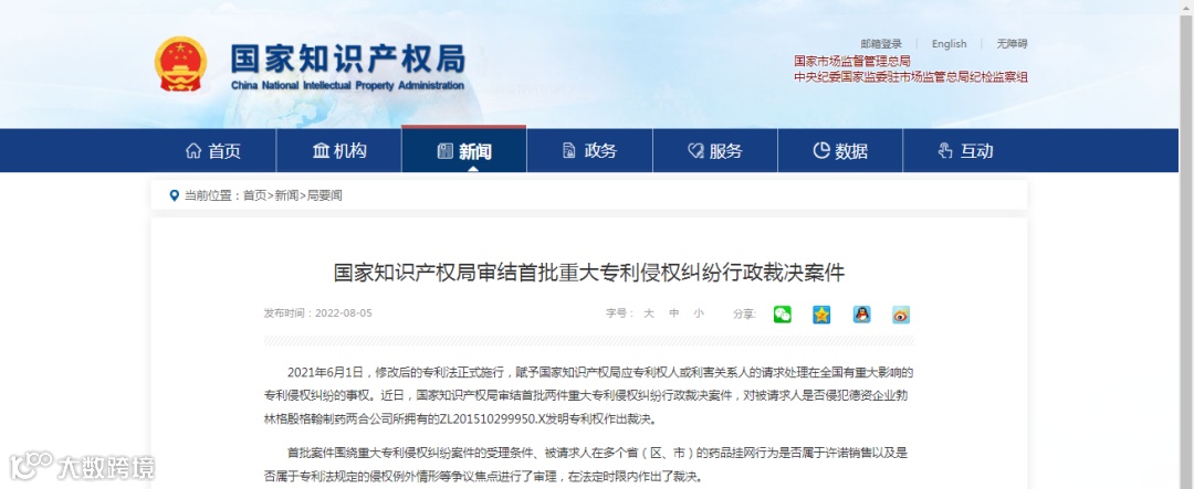 2021年6月1日,修改后的专利法正式施行,赋予国家知识产权局应专利权人或利害关系人的请求处理在全国有重大影响的专利侵权纠纷的事权。近日,国家知识产权局审结首批两件重大专利侵权纠纷行政裁决案件,对被请求人是否侵犯德资企业勃林格殷格翰制药两合公司所拥有的ZL201510299950.X发明专利权作出裁决。