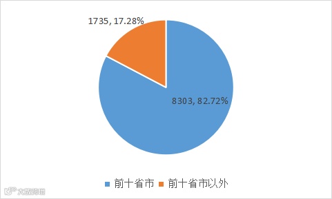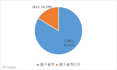图3 空调外观设计专利前十省市在国内的占比