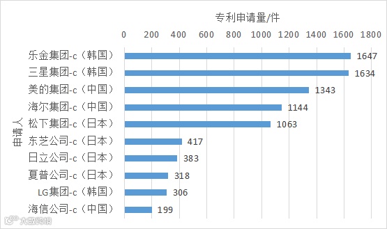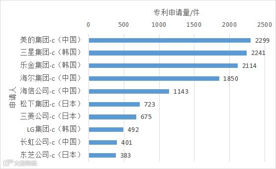 图8 洗衣机全球外观设计专利前十申请人排名