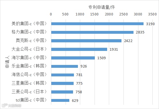 图6 空调全球外观设计专利前十申请人排名