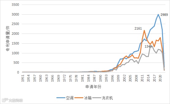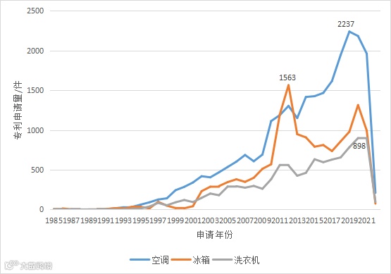 图2 空调、冰箱、洗衣机中国外观设计专利申请态势