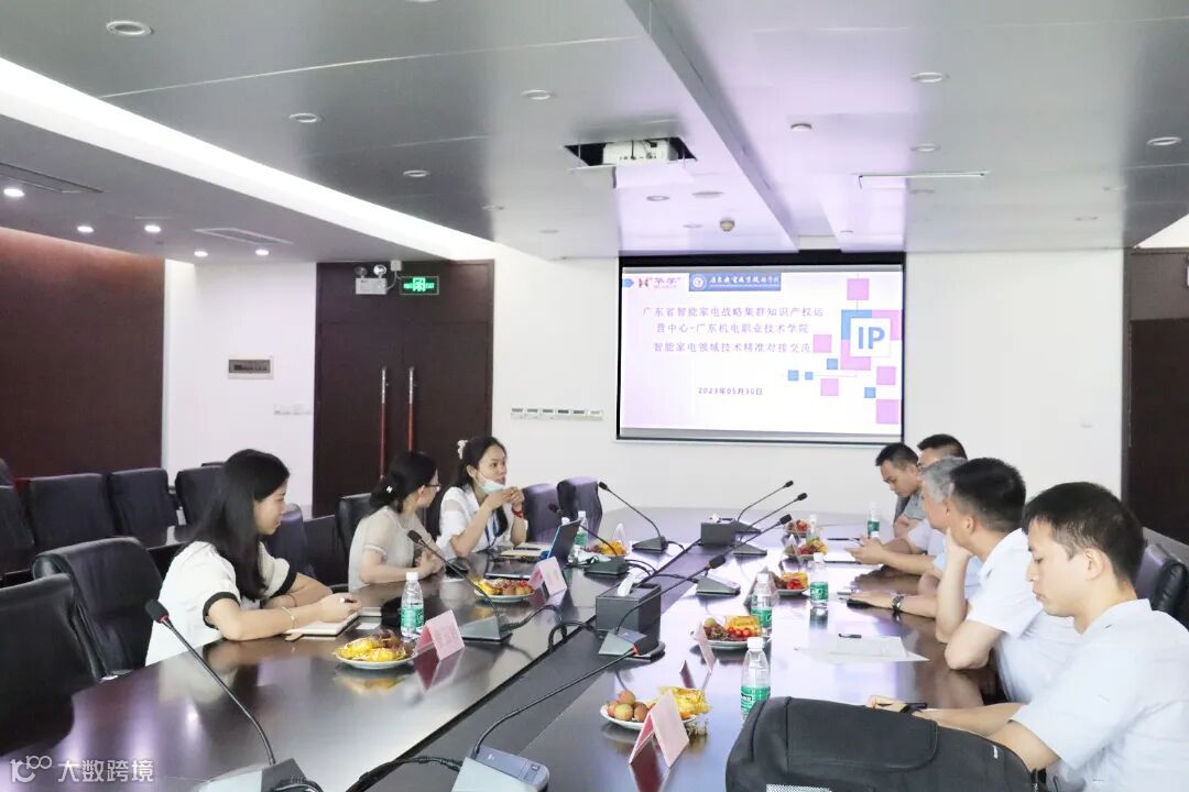 为推进校企智能家电领域技术的精准对接,5月30日上午,广东机电职业技术学院汽车学院院长陈黎明、广东机电职业技术学院科学技术部副部长王广海等一行5人到我司进行合作交流。我司合伙人兼广东省智能家电战略性支柱产业集群知识产权协同运营中心(以下简称智能家电运营中心)项目负责人裘晖、智能家电运营中心成员温建梅、智能家电运营中心成员曾玉婷参加交流会议。