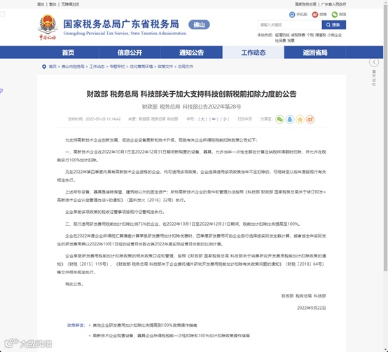 最近想购买一些设备和器具,但还在傻傻等待双十一?最新优惠政策这不就来了~~~为支持高新技术企业创新发展,促进企业设备更新和技术升级,财政部、税务总局、科技部近期联合发布《关于加大支持科技创新税前扣除力度的公告》(财政部 税务总局 科技部公告 2022年第28号),明确了高新技术企业购置设备和器具一次性全额扣除并加计扣除政策。