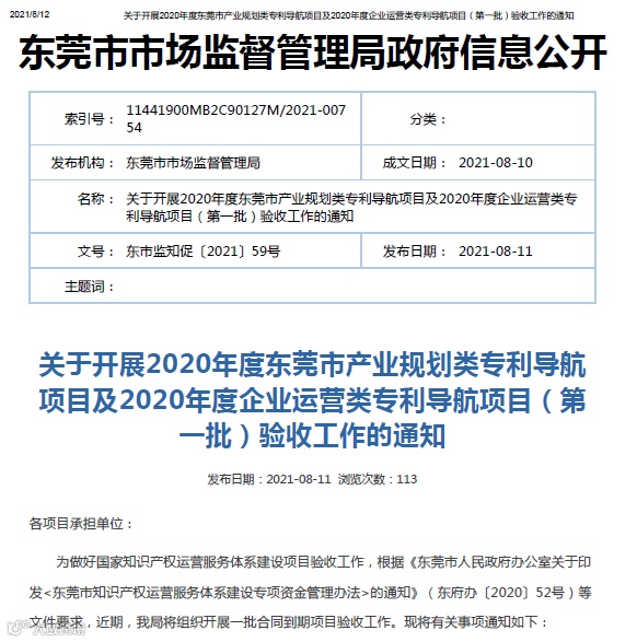 为做好国家知识产权运营服务体系建设项目验收工作,根据《东莞市人民政府办公室关于印发<东莞市知识产权运营服务体系建设专项资金管理办法>的通知》(东府办〔2020〕52号)等文件要求,近期,我局将组织开展一批合同到期项目验收工作。现将有关事项通知如下: