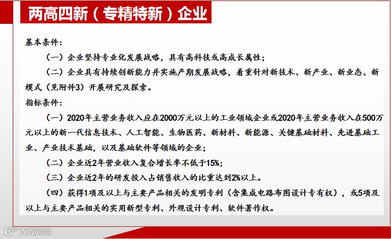 官方答复:根据工信部《优质中小企业梯度培育管理暂行办法》要求,申报国家级专精特新“小巨人”企业,须拥有2项以上与主导产品相关的I类知识产权,且实际应用并已产生经济效益,且不包含转让未满1年的知识产权。