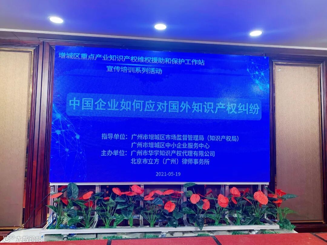2021年5月19日,由广州市增城区市场监督管理局(知识产权局)指导,广州市华学知识产权代理有限公司、北京市立方(广州)律师事务所联合主办的“增城区重点产业知识产权维权援助和保护工作站宣传培训系列活动——中国企业如何应对国外知识产权纠纷培训班”在广州太阳城大酒店会议室隆重举行。广州市华学知识产权代理有限公司合伙人梁莹出席了本次培训班。