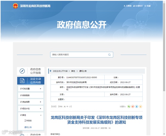 【发文单位】深圳市龙岗区科技创新局