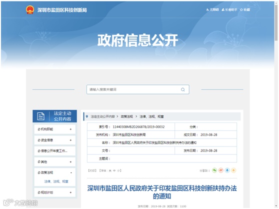 【发文单位】深圳市盐田区科技创新局