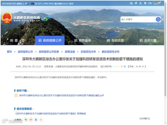 【发文单位】深圳市大鹏新区科技创新和经济服务局科技创新科