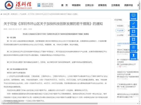 【发文单位】深圳市坪山区科技创新局