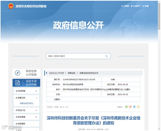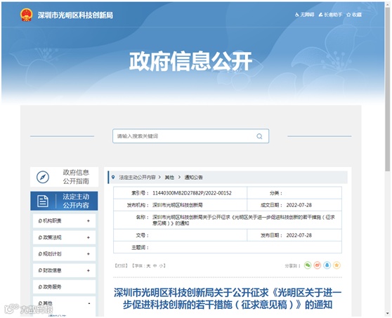 【发文单位】深圳市光明区科技创新局
