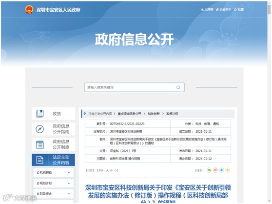 【发文单位】深圳市宝安区科技创新局