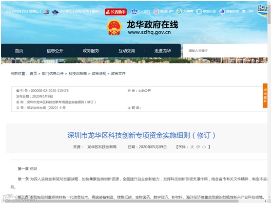【政策名称】深圳市龙华区科技创新专项资金实施细则(修订)