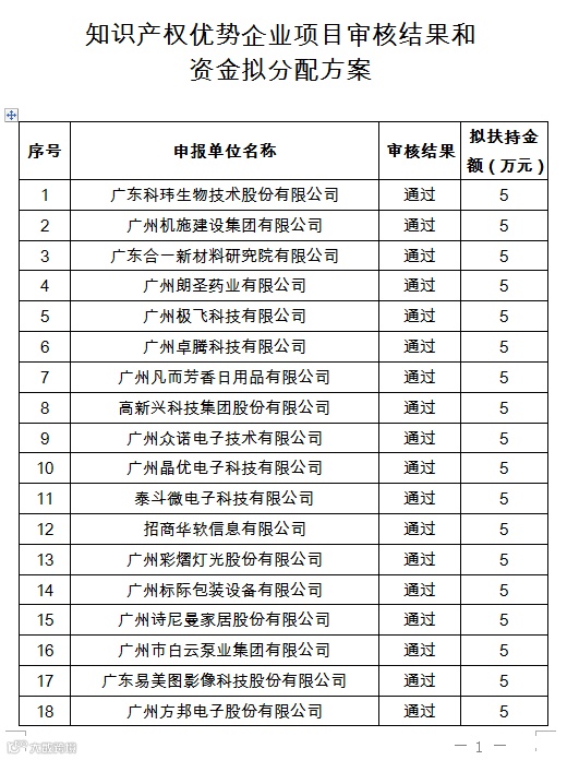 附件:1.知识产权优势企业项目审核结果和资金拟分配方案.doc